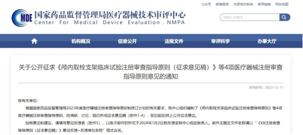 12月11日,國家藥監(jiān)局器審中心發(fā)布《面部注射填充材料臨床試驗注冊審查指導原則(征求意見稿)》《體外膜肺氧合系統(tǒng)臨床評價注冊審查指導原則(征求意見稿)》等4項醫(yī)療器械注冊審查指導原則,并向社會公開征求意見。