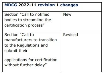 較之去年發(fā)布的MDCG 2022-11,本次修訂版本主要如下: