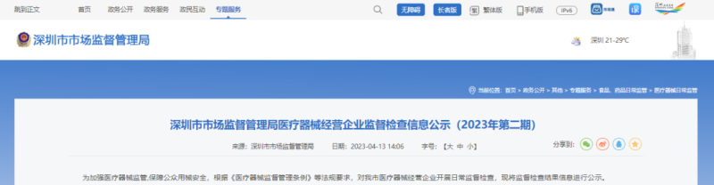 4月13日,深圳市市場監(jiān)督管理局官網(wǎng)公布醫(yī)療器械經(jīng)營企業(yè)監(jiān)督檢查結(jié)果(2023年第二期),共對318家醫(yī)療器械經(jīng)營企業(yè)進(jìn)行了監(jiān)督檢查,其中有11家需要整改,具體如下: