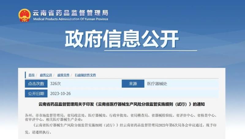 10月26日,云南省藥監(jiān)局官網(wǎng)發(fā)布《云南省醫(yī)療器械生產(chǎn)風(fēng)險(xiǎn)分級(jí)監(jiān)管實(shí)施細(xì)則(試行)》(以下簡(jiǎn)稱《實(shí)施細(xì)則》),其中指出設(shè)定醫(yī)療器械生產(chǎn)企業(yè)靜態(tài)風(fēng)險(xiǎn)和動(dòng)態(tài)風(fēng)險(xiǎn)評(píng)價(jià)指標(biāo)及分值,根據(jù)計(jì)分結(jié)果確定醫(yī)療器械生產(chǎn)企業(yè)風(fēng)險(xiǎn)等級(jí)。