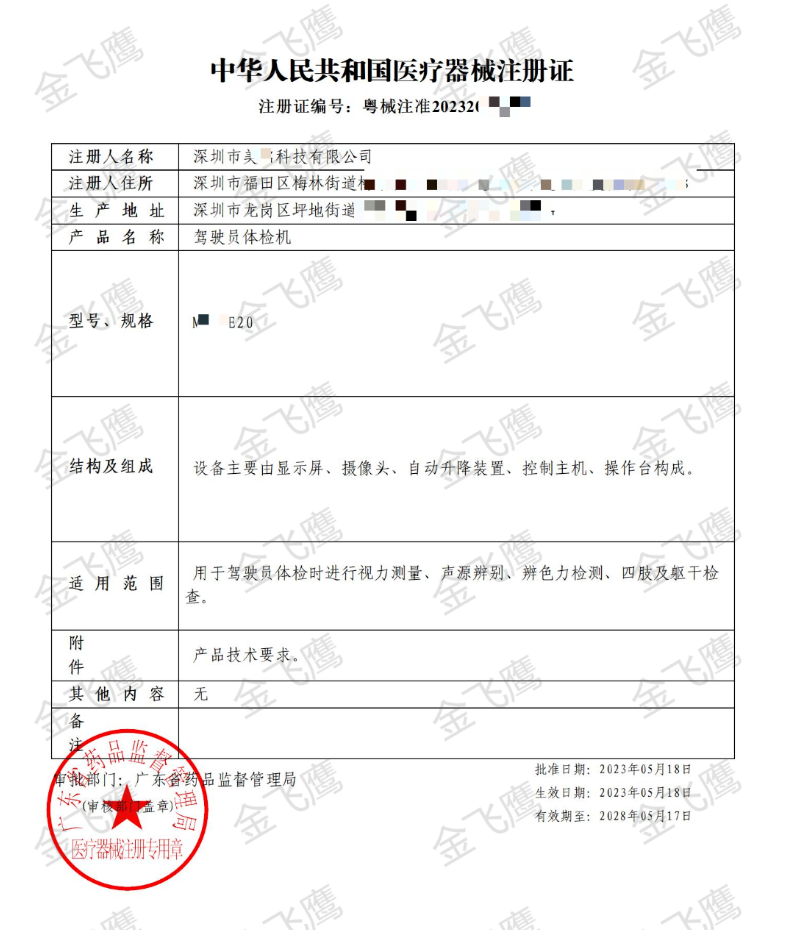 成功取得了駕駛員體檢機(jī)的注冊(cè)證