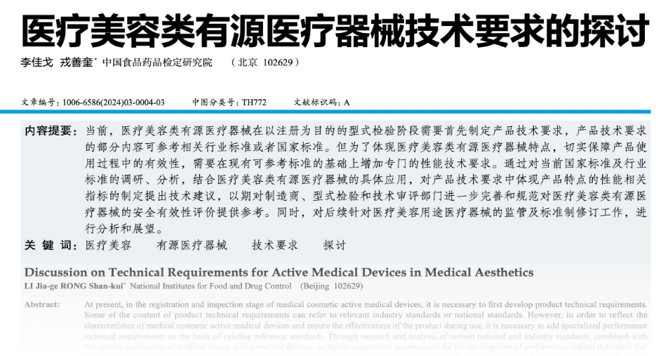 近期,《中國(guó)醫(yī)療器械信息》雜志刊登了一篇文章《醫(yī)療美容類有源醫(yī)療器械技術(shù)要求的探討》,從市場(chǎng)趨勢(shì)、現(xiàn)有標(biāo)準(zhǔn)情況、體現(xiàn)產(chǎn)品臨床特點(diǎn)的技術(shù)指標(biāo)研究、展望與技術(shù)探討等方面對(duì)有源醫(yī)美產(chǎn)品進(jìn)行了探討,本期文章我們摘錄了其中部分內(nèi)容跟大家進(jìn)行簡(jiǎn)單分享。