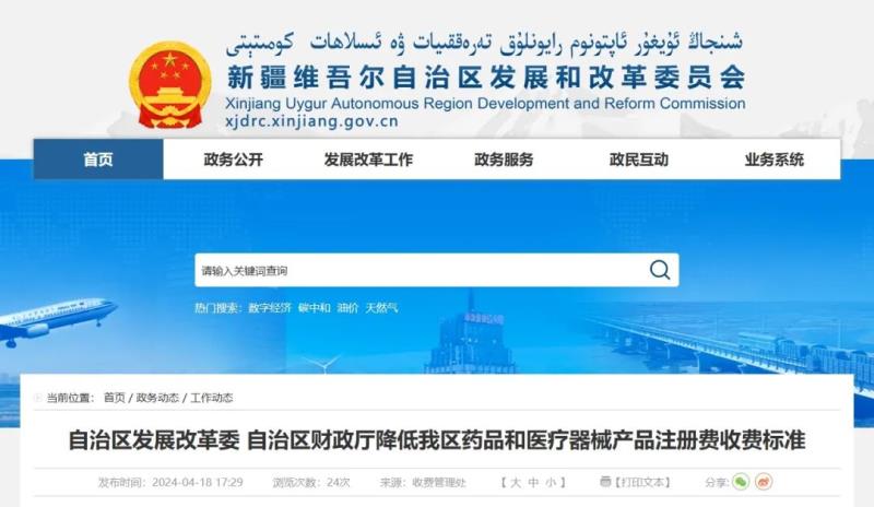 4月18日,新疆維吾爾自治區(qū)發(fā)展和改革委員會(huì)同自治區(qū)財(cái)政廳印發(fā)《關(guān)于調(diào)整藥品醫(yī)療器械產(chǎn)品注冊(cè)費(fèi)收費(fèi)標(biāo)準(zhǔn)的通知》,明確自2024年4月29日起,取消藥品補(bǔ)充申請(qǐng)注冊(cè)費(fèi),藥品再注冊(cè)費(fèi)由22284元/次降為1200元/次,境內(nèi)第二類醫(yī)療器械產(chǎn)品首次注冊(cè)費(fèi)由70434元/次降為2800元/次、變更注冊(cè)費(fèi)由29484元/次降為2400元/次、延續(xù)注冊(cè)費(fèi)由29250元/次降為1200元/次。同時(shí),按照國家要求,對(duì)與新型冠狀病毒防控相關(guān)的藥品和醫(yī)療器械產(chǎn)品免征注冊(cè)費(fèi),執(zhí)行期限延長至2027年12月31日。
