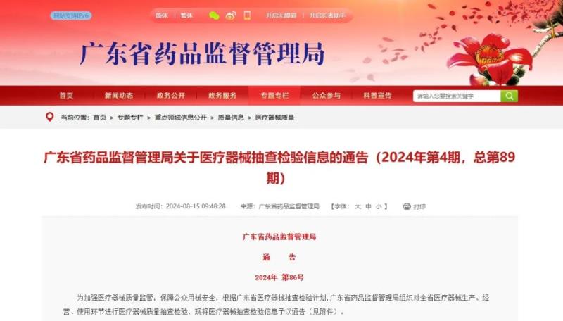 8月15日,廣東藥監(jiān)局發(fā)布《關(guān)于醫(yī)療器械抽查檢驗(yàn)信息的通告(2024年第4期,總第89期)》,我們通過(guò)查看通告中的附件發(fā)現(xiàn),本次共抽查檢驗(yàn)了322批次產(chǎn)品,其中有10批次不符合規(guī)定,包括醫(yī)用重組Ⅲ型人源膠原蛋白敷料、硅酮疤痕凝膠、一次性無(wú)菌鼻塞吸氧管、紅外額溫計(jì)等產(chǎn)品,不符合規(guī)定產(chǎn)品具體明細(xì)如下: