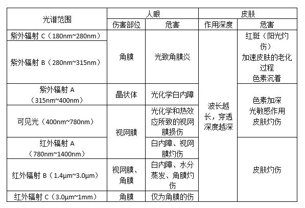 優(yōu)先確定光波段,還有一個(gè)重要意義,就是不同的光譜范圍對(duì)于人眼和皮膚的危害是不同的,在進(jìn)行光輻射安全分類測試時(shí),不同波段的發(fā)射有著不同的發(fā)射限值,這在測試和數(shù)據(jù)處理中要尤為注意。