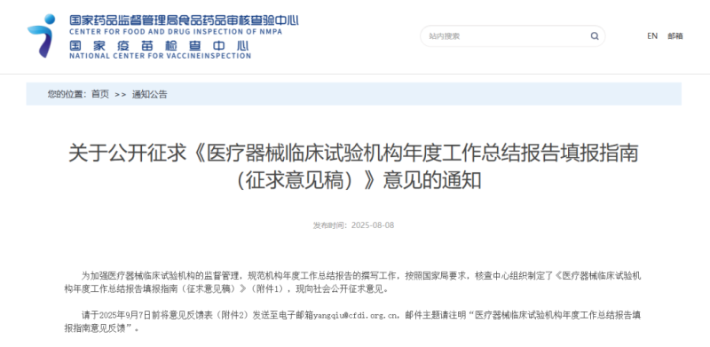 為統(tǒng)一年度報(bào)告填報(bào)格式,規(guī)范填報(bào)內(nèi)容,保證填報(bào)質(zhì)量,為臨床試驗(yàn)監(jiān)督管理提供客觀、準(zhǔn)確、高質(zhì)量數(shù)據(jù),近日,國(guó)家藥監(jiān)局核查中心發(fā)布《醫(yī)療器械臨床試驗(yàn)機(jī)構(gòu)年度工作總結(jié)報(bào)告填報(bào)指南(征求意見稿)》(以下簡(jiǎn)稱《指南》),并向社會(huì)公開征求意見。